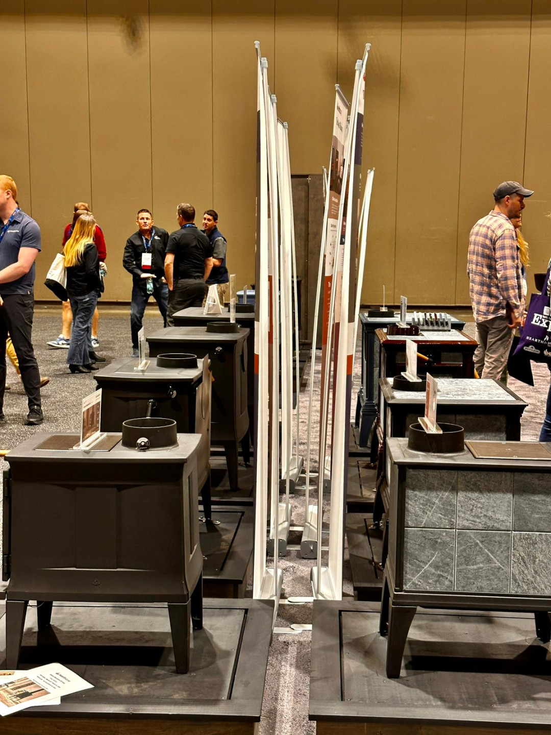 La personalización ha sido otro de los pilares en nuestro stand. La estufa Glow, ahora con la opción de incorporar una placa superior de piedra esteatita, ha sorprendido por su capacidad de acumulación térmica. Esta combinación de hierro fundido y piedra natural no solo añade un valor estético único a la pieza, sino que optimiza el aprovechamiento del calor, permitiendo que la estancia permanezca cálida mucho después de que la llama se haya extinguido.