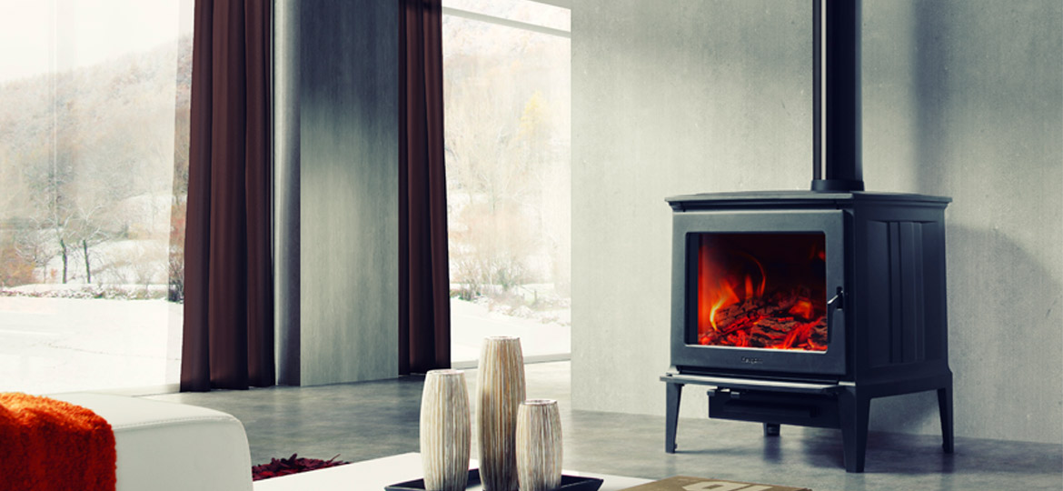 El desarrollo de nuevas propuestas en calor de leña ha llevado a la firma Hergóm a fabricar algunos de sus modelos con cámaras de hierro recubiertas con fundente blanco, una innovación que resalta el brillo y la luz del fuego.