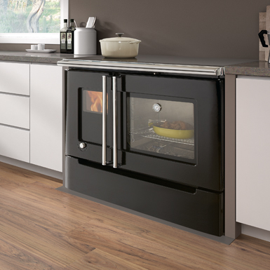 Si además de cocinar quieres convertir tu cocina de leña en la calefacción central de tu hogar, para reducir al máximo tu consumo energético, varias de nuestras series cuentan con versiones calefactoras, con pailas adecuadamente dimensionadas para proporcionar agua caliente a la red de radiadores.