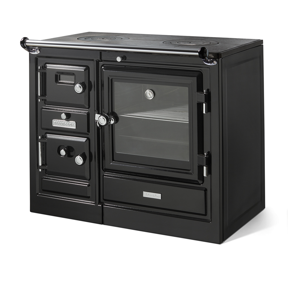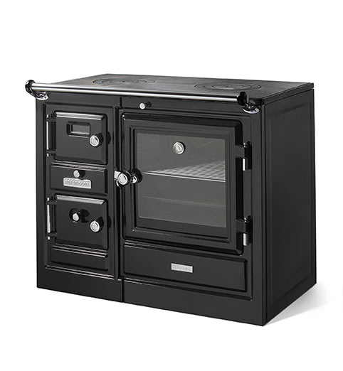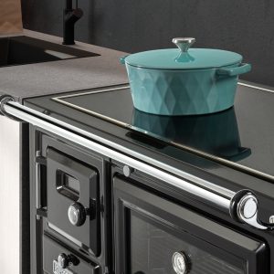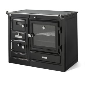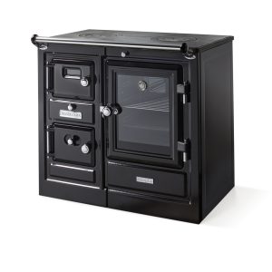 Las cocinas de leña de la Serie Saja, de diseño robusto y discreto, presentan una puerta de horno acristalada que permite controlar visualmente los alimentos. Se presentan en dos tamaños, de 90 y 100 cm de ancho, ambos disponibles también en versión calefactora, para que aproveches la leña como calefacción central, con el consiguiente ahorro.