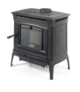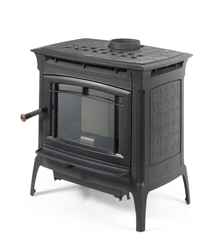 Con puertas de carga de leña frontal y lateral, la recarga de combustible de la estufa Manchester se realiza de forma fácil y cómoda.